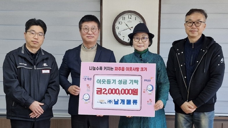 파주시 파주읍, ㈜날개물류로부터 이웃 돕기 성금 200만 원 기탁 받아
