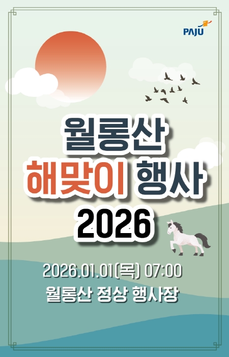 존경하고 사랑하는 54만 파주시민 여러분! 2026년 병오년(丙午年), 새해가 밝았습니다. 하루에 천 리를 달린다는 ‘적토마’처럼 멈춤 없이 힘차게 전진하는 한 해가 되시기를 바라며 올 한 해, 늘 건강과 행복이 가득하시길 기원합니다. 수많은 도전과 변화의 2025년을 뒤로하고, 2026년 새로운 출발선에 서