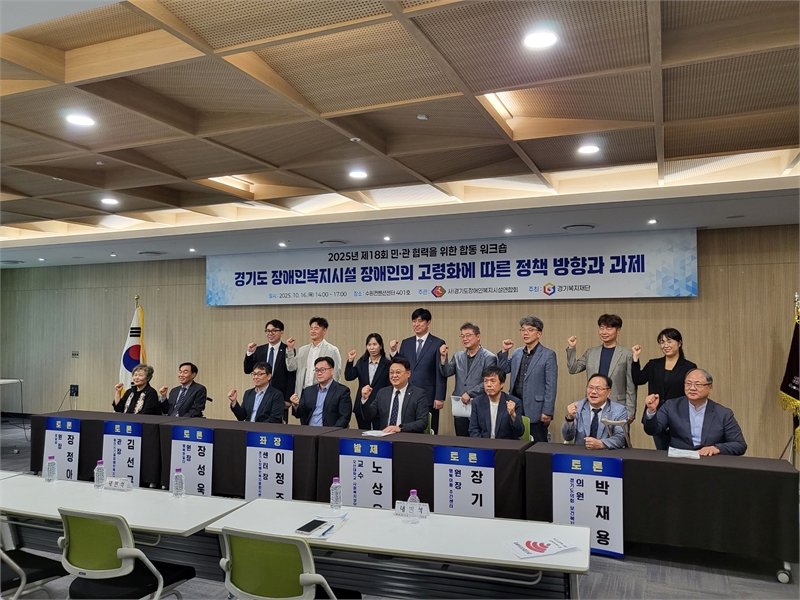 경기도의회 보건복지위원회 박재용 의원(더불어민주당, 비례)은 16일(목) 수원컨벤션센터에서 개최된 「제18회 민관 협력을 위한 합동 워크숍」에 토론자로 참석해, ‘경기도 장애인복지시설 장애인의 고령화에 따른 정책 방향과 과제’를 주제로 한 토론회에서 고령 장애인 정책의 새로운 방향을 제시했다.