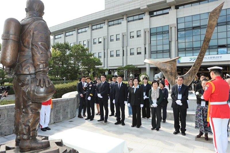 이날 추모식은 경기도 소속으로 근무 중 순직한 소방공무원들의 숭고한 희생을 기리고, 그들의 헌신을 도민의 기억 속에 영원히 남기기 위해 마련된 자리로, 경기도의회와 경기도, 경기도소방재난본부 관계자, 순직 소방공무원들의 유가족, 그리고 도민이 함께했다.