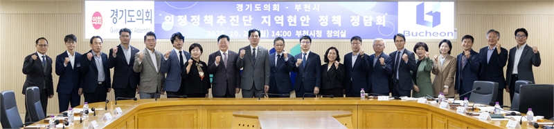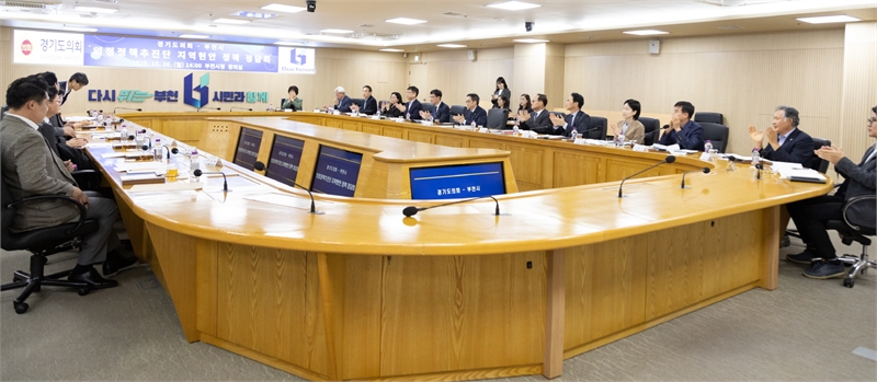 경기도의회 의정정책추진단은 20일(월) 부천시청 회의실에서 ‘지역 현안 정책 정담회’를 열고 부천 지역의 주요 정책 현안과 경기도의회 차원의 지원 방안을 논의했다.