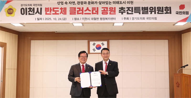 경기도의회 국민의힘(대표의원 백현종)은 24일 ‘이천시 반도체 클러스터 공원 추진특별위원회’를 출범하고 추진특별위원장에 허원(이천2) 의원을 임명했다.