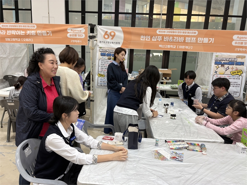 행사에는 고양 관내 50여 개 학교, 수백 명의 학생과 교직원, 시민이 참여했으며 ‘색이 변하는 마법 주스’, ‘발광체 실험’, ‘천연 비누 만들기’, ‘3D 프린팅 체험’ 등 다양한 창의융합 부스가 운영되어 큰 호응을 얻었다.