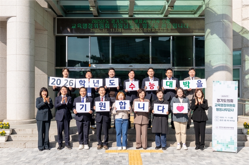 경기도의회 교육행정위원회(위원장 이애형)가 11일(화) 용인·화성오산·양평·의정부교육지원청에 대한 행정사무감사가 열린 용인교육지원청에서 ‘2026학년도 대학수학능력시험’에 응시하는 경기도 수험생에 대한 응원과 격려의 메시지를 전했다.