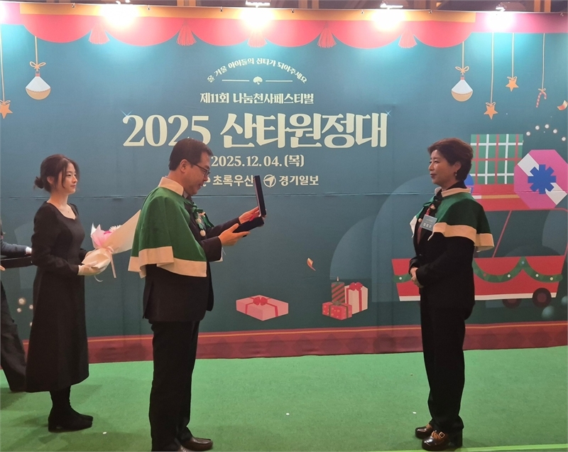 경기도의회 정경자 의원(국민의힘)이 지난 4일(목) 수원특례시 장안구 복합문화공간 111CM에서 열린 ‘제11회 나눔천사페스티벌 2025 산타원정대’에서 아동·청소년 복지 향상과 사회적 나눔 문화 확산에 기여한 공로를 인정받아 초록우산 어린이재단으로부터 감사패를 수상했다.