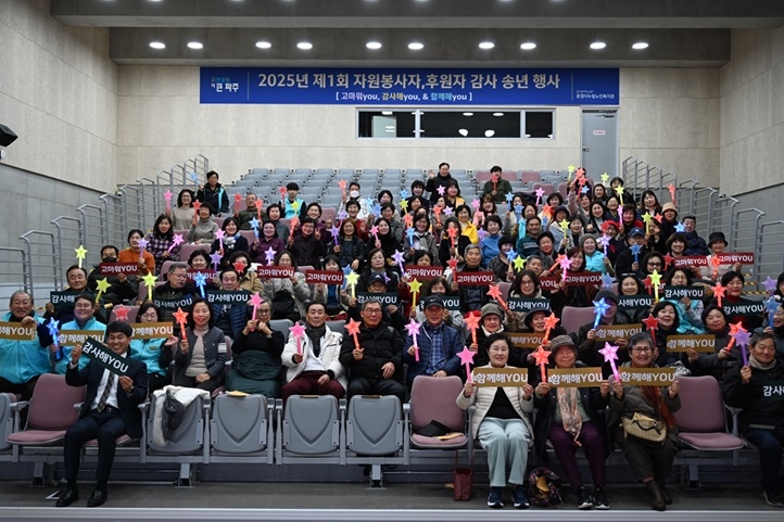 파주시는 지난 11일, 운정다누림노인복지관에서 자원봉사자와 후원자에 대한 감사를 위한 송년 행사인 ‘고마워유(YOU), 감사해유(YOU) 앤드(&) 함께해유(YOU)’ 행사를 개최했다고 밝혔다.