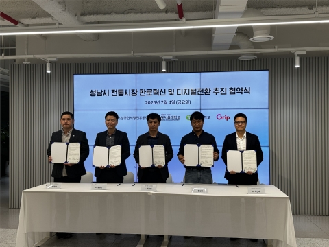 지난 7월 4일에는 소진공 성남센터를 비롯해 그립컴퍼니, 성남시 상인연합회, 동서울대학교, 신구대학교 등 5개 기관이 참여한 ‘성남시 전통시장 판로 혁신 및 디지털 전환(DX) 추진’ 업무협약(MOU)이 체결됐다. 협약식에는 관계 기관 대표들이 참석해 디지털 전환 지원 확대와 지역 경제 활성화를 위한 공동 협력 방향을 공유했다.