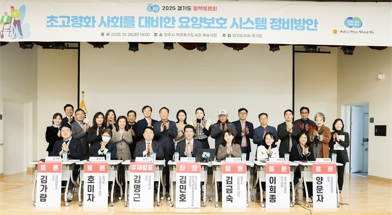 [차미정 기자]김민호 경기도의회 여성가족평생교육위원회 부위원장(국민의힘, 양주2)이 좌장을 맡은 「초고령화 사회를 대비한 요양보호 시스템 정비방안」을 위한 토론회가 10월 28일(화) 양주시 옥정호수도서관(예술극장)에서 개최됐다. 이번 토론회는 경기도와 경기도의회가 공동으로 주최하는 ‘2025 경기도 정책토론회’의 일환